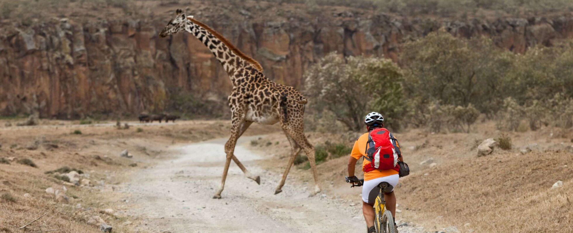 Oplev den storslåede natur i Great Rift Valley – på cykel! Fra Chui Gate til Hell’s Gate National Park venter en 44 kilometer cykeltur gennem det smukkeste landskab. Undervejs cykler du side om side med zebraer, giraffer og farverige fugle, og passerer små, lokale byer. Når du når parken, kan du vælge enten at vende tilbage til udgangspunktet, eller at fortsætte ind i parken (uden ekstra gebyr) og opleve de dramatiske klipper, høje stenformationer, kløfter og det rige dyreliv. En skøn udflugt – fuld af naturoplevelser og motion!