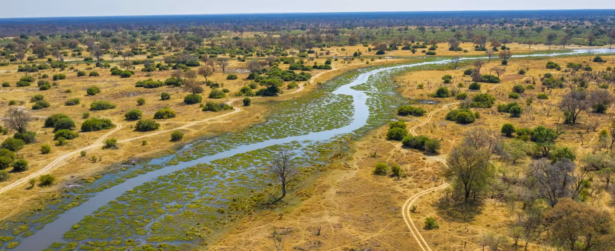 The flight from Maun to the Khwai Community Concession takes 45 minutes, bringing you straight to an airstrip in the Khwai. Located to the north-eastern edge of the Okavango Delta, you instantly land in a wildlife-filled, watery wilderness. Before touching down, you enjoy stunning views of the delta’s palm-fringed floodplains and the Khwai River. It’s not uncommon to see herds of elephants and hippos before touchdown! Your driver awaits you at the airport and brings you to your lodge, leaving ample time to step into your first mokoro and hit the river!