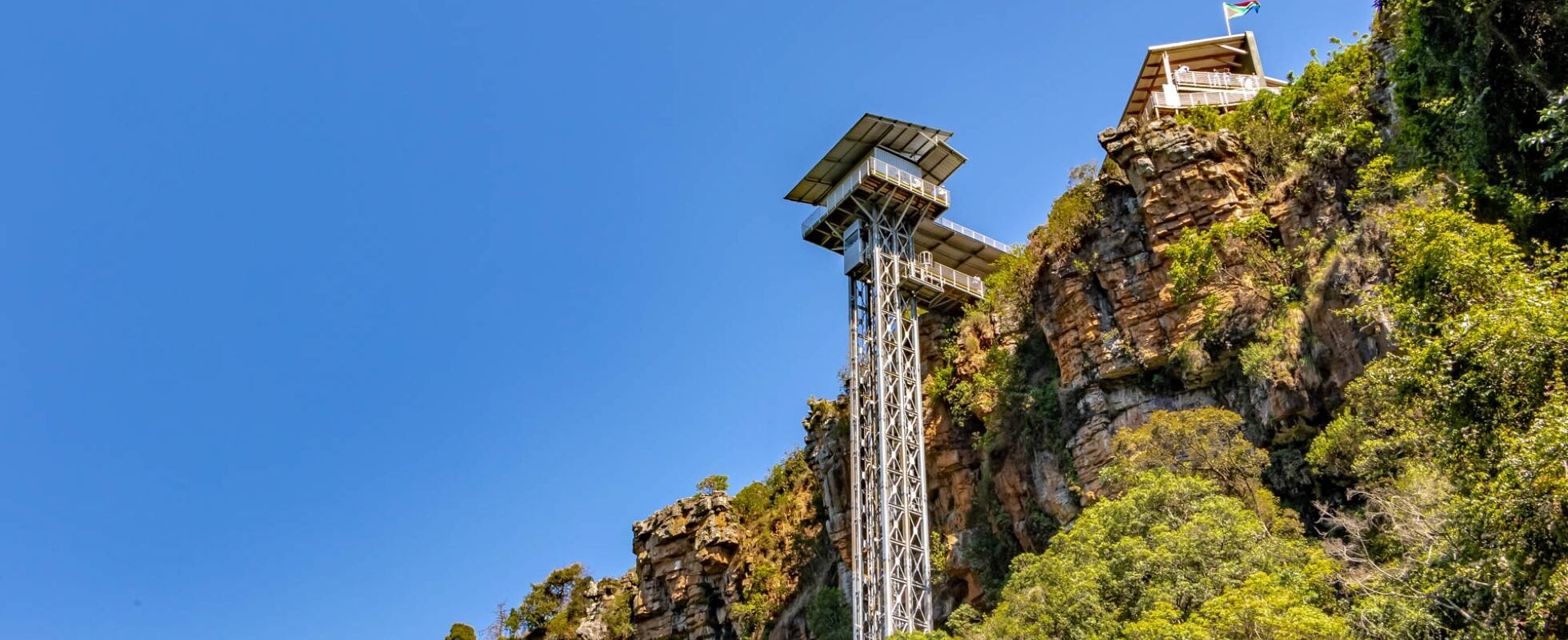 Perfekt placeret langs den ikoniske Panorama Route, lige uden for Graskop på R533 mod Hazyview, er Graskop Gorge Lift en glas-elevator, der fører 51 meter ned i hjertet af en ældgammel bjergskov, samtidig med at du nyder panoramiske udsigter over Drakensberg Escarpment, mens du glider ned. Når du er nede, kan du følge den 600 meter lange guidede skovsti, som går over broer, floder og forbi vandfald i et frodigt og fredfyldt landskab. Stedet byder også på zipline, klatresti langs klippen, hængebro og den legendariske Big Swing for dem, der søger spænding. Det anbefales stærkt at booke på forhånd!