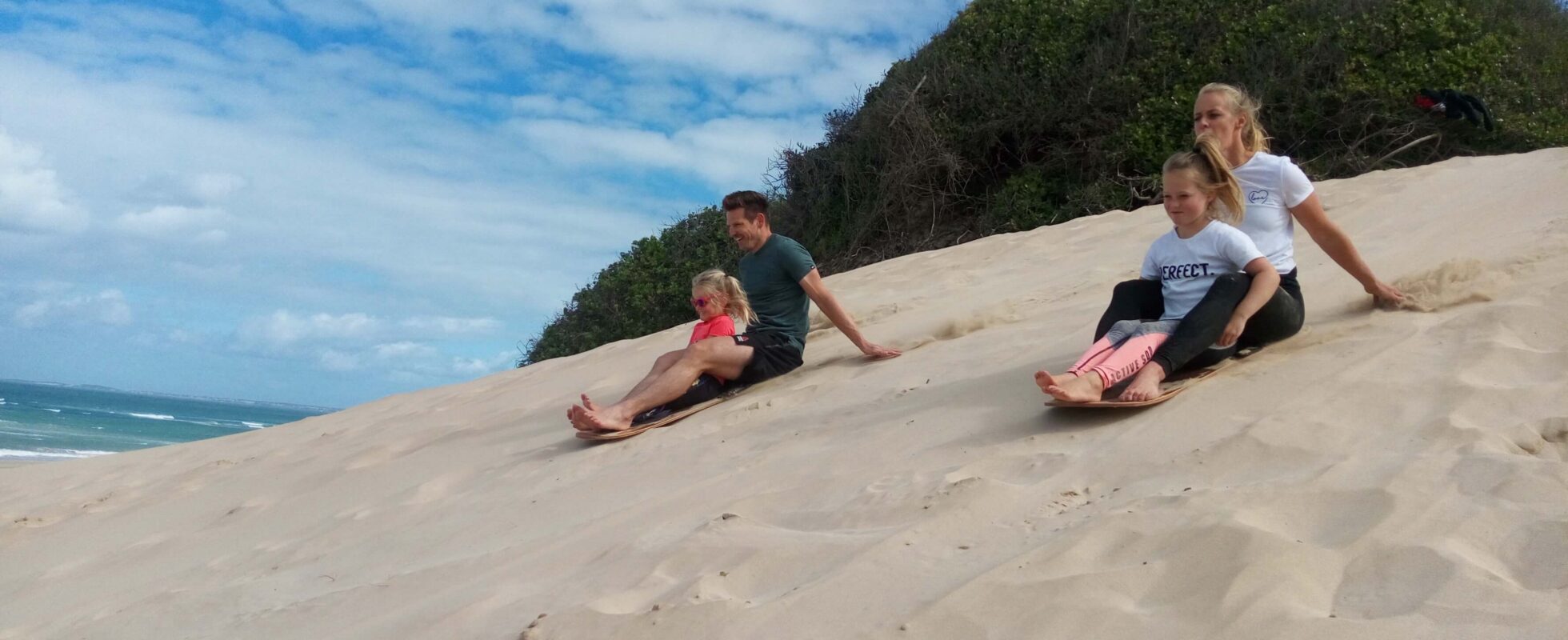 Klar til fart og sjov på de gyldne klitter? Sandboarding i Jeffreys Bay er perfekt for alle niveauer – fra blide skråninger for begyndere til spændende, stejle nedkørsler for de modige. Det minder om snowboarding, bare varmere – og med havudsigt over St Francis Bay, hvor du måske endda kan få øje på delfiner eller hvaler (i sæsonen). Dit 2-timers eventyr starter ved Wacky Wipeouts Sandboarding Shack ved Marina Martinique Beach-parkeringen, hvor alt udstyr og instruktion er inkluderet. Ture afgår dagligt kl. 10 og kl. 14, og du kan endda tilføje en kajaktur eller en tur på paddleboard på lagunen for lidt ekstra sjov!