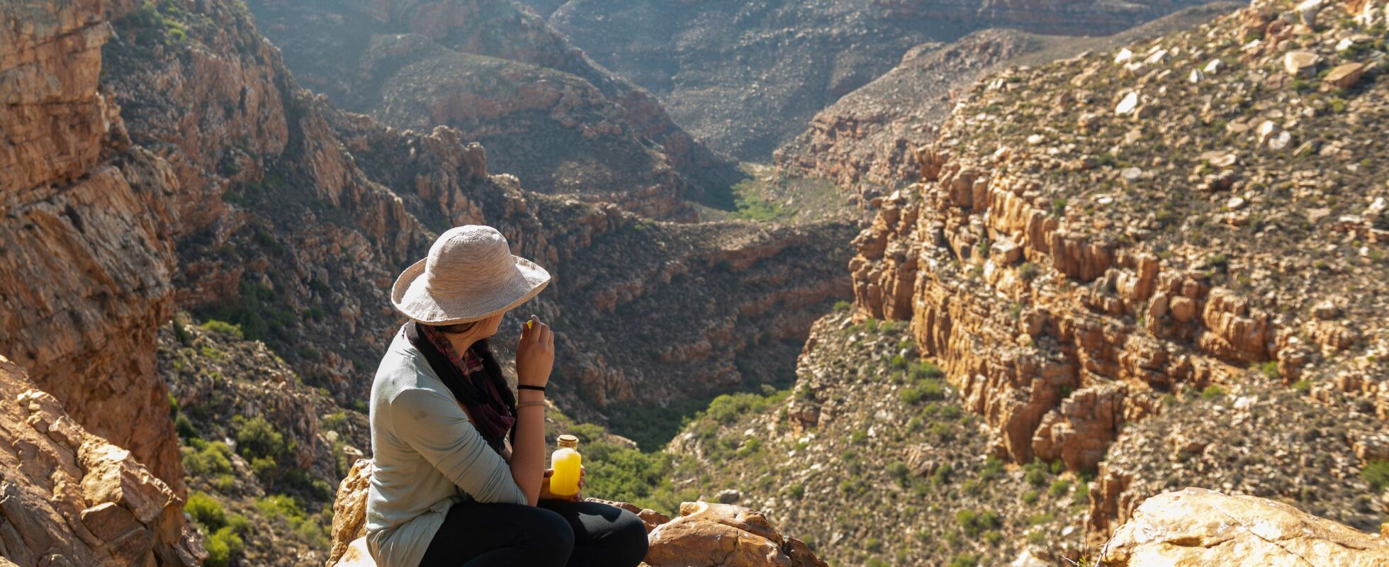 Tag med på en afslappet aftenvandring til det betagende udsigtspunkt over Rietrivier Canyon, med start fra Mount Ceder Guest House – husk at reservere plads på forhånd. Denne lette og familievenlige vandretur tager ca. 30 minutter hver vej og belønner dig med en storslået udsigt over Cederberg, mens solen glider ned bag bjergene. Nyd en kold drink og en let snack, mens du nyder det gyldne aftenslys. Når solen går ned, kan du blive og opleve nogle af Sydafrikas bedste stjernehimle. Den samlede oplevelse, inklusive aftensstemning og stjernekig, varer omkring 3 timer og er helt uforglemmelig.