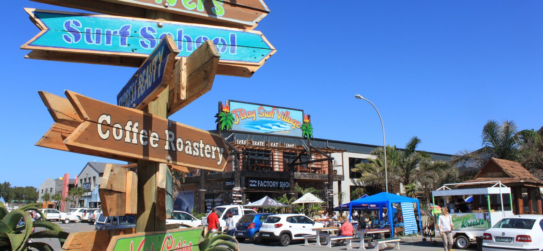 Surf Village i Jeffreys Bay er et afslappet udendørs shoppingområde fyldt med surfbutikker, fabriksudsalg, boligartikler, lækre restauranter og lidt forkælelse. Det har været et populært shoppingsted siden 1980’erne og fejrer J-Bays ikoniske surf- og skatekultur. Kun en kort gåtur fra Dolphin Beach er det perfekt til at gøre gode Billabong-kup, nyde en kold specialøl eller tage en afslappet frokost. Et must for alle, der vil opleve den afslappede shoppingstemning med salt i luften!