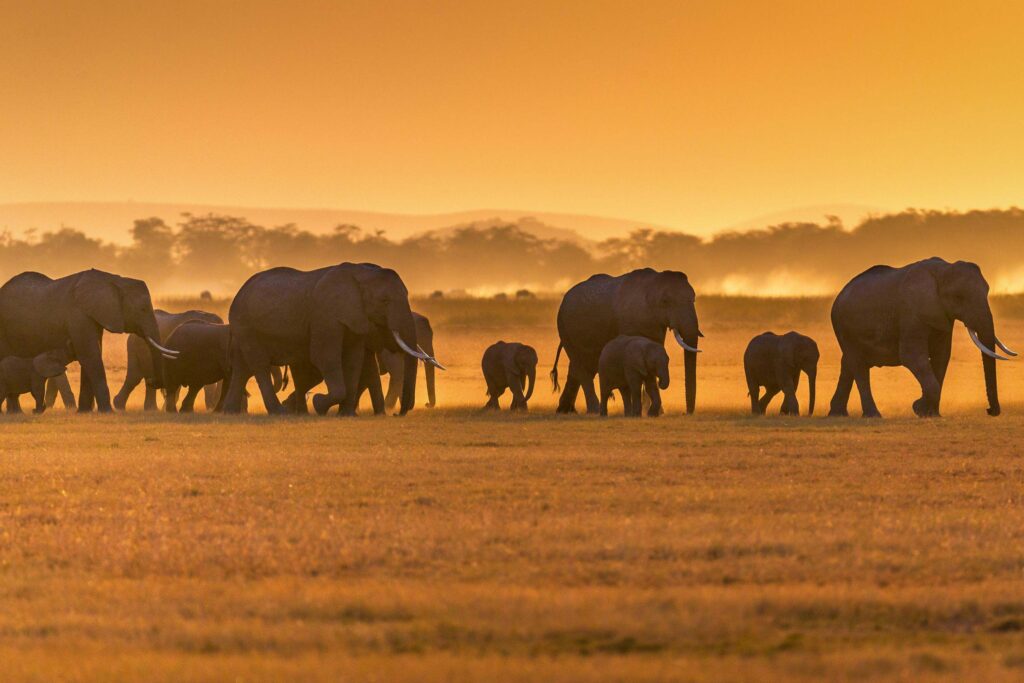 Forestil dig dette: Du kører gennem Masai Mara National Reserve i Kenya. Du kigger til venstre og ser solen gå ned over savannen. Sikke en følelse! Er det en Fata Morgana 😉 eller ser du en flok elefanter i det fjerne? Selvfølgelig er der en flok elefanter! Masser af kalve, der gemmer sig bag deres mødre, mens deres kvindelige leder viser vej. De er på vej til vandhullet ikke langt herfra. Lad os komme tættere på!