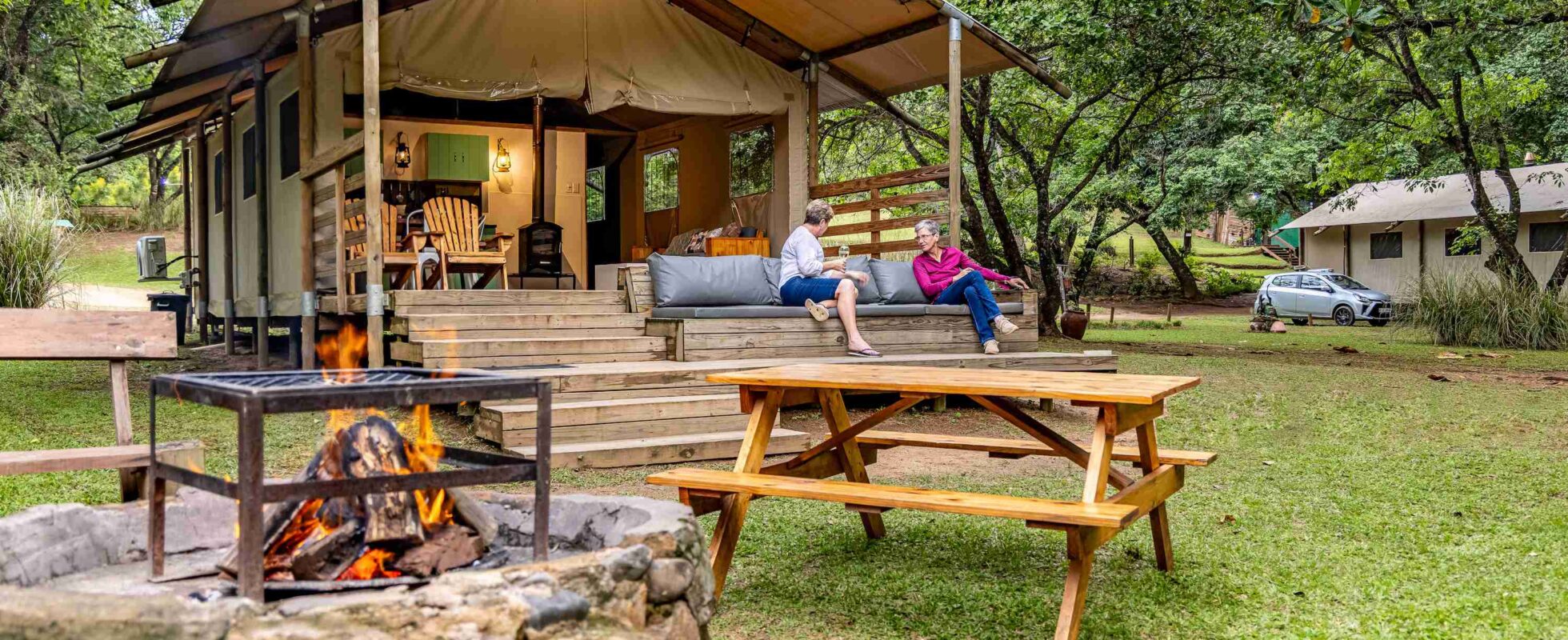 Kun 30 kilometer fra Phabeni-porten til Kruger National Park ligger AfriCamps at Mackers, der forener roen ved floden med komforten ved boutique-glamping i hjertet af Sabie-dalen. Stedet tilbyder telte med private badeværelser, brusere, opholdsområder og fuldt udstyrede køkkener. Her kan du slappe af ved swimmingpoolen, fiske eller gå en tur langs Sabie-floden for at se de vilde strømfald opstrøms. Morgenmadskurve er tilgængelige mod et tillægsgebyr, mens grillfaciliteter gør middagen til en sjov, hjemmelavet affære. Lejren har også en butik, der fører dagligvarer, kolde drikkevarer og is. Børnene bliver heller ikke glemt, da de kan male sten eller lege i Kids Zone. Alt dette, sammen med ugler og buskbabyer, der kalder om natten, gør opholdet til en oplevelse, der føles både tæt på naturen og komfortabelt udstyret.