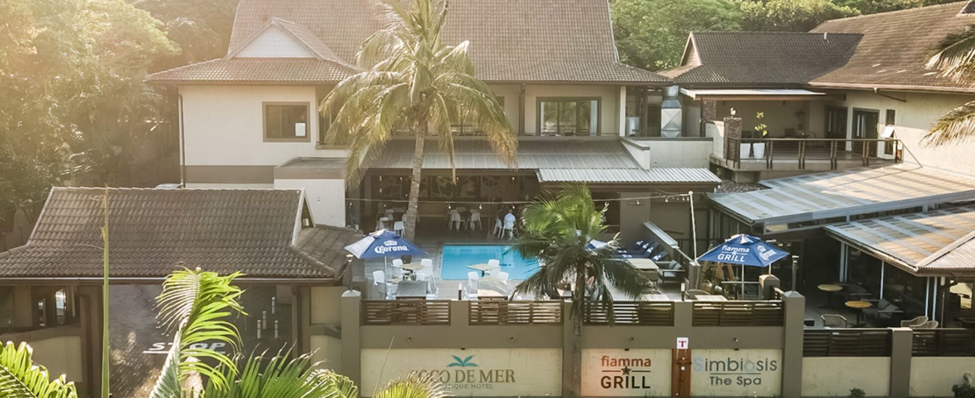 Coco De Mer Boutique Hotel i Ballito ligger midt i en naturlig naturskov med den varme tropiske Indiske Ocean som bagtæppe, i gåafstand fra de mest eksklusive strande. 19 luksuriøse Afro-Bali-inspirerede suiter har private balkoner med udsigt enten over havet eller skoven. Værelserne har eget badeværelse med bruser og toiletartikler og er udstyret med tv, gratis WiFi, aircondition, kaffe- og tefaciliteter, et pengeskab samt en fuldt fyldt minibar. Simbiosis Spa er beliggende i hotellets skovhave og byder gæster velkommen til afslappende behandlinger i frodige og rolige omgivelser. Madentusiaster vil sætte pris på hotellets egen Fiamma Grill restaurant, som henter inspiration fra det italienske køkken med et lokalt twist. Uanset om du foretrækker fine dining-oplevelser eller den festlige stemning omkring den eksotiske poolbar, finder du det her – nogle gange endda med live musik.