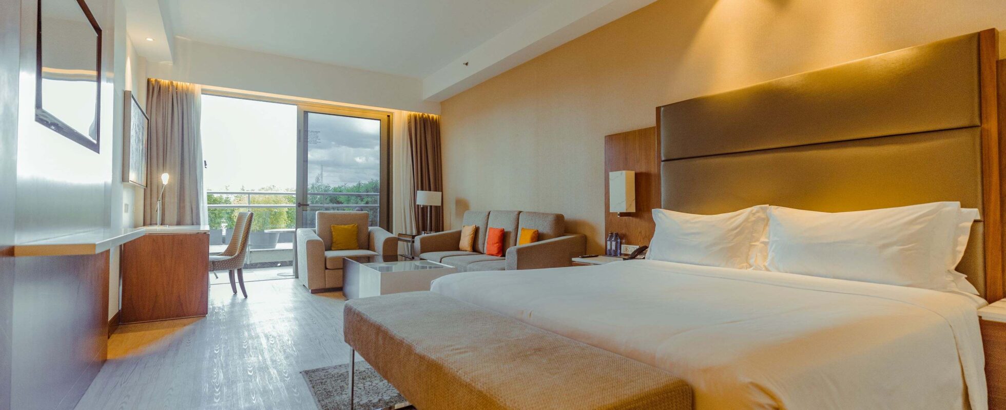 Crowne Plaza Nairobi Airport tilbyder en række faciliteter, der ligger kun tre minutters kørsel fra Jomo Kenyatta International Airport, hvilket gør det til det perfekte sted at hvile inden og efter en flyvetur. Hotellet har 144 lydisolerede værelser, der er udstyret med alt, hvad du behøver: smart-tv, kaffe/te-station, sengetøj af høj kvalitet, komfortable senge, elegante badeværelser og private balkoner, hvor du kan sidde og læse en bog, mens du nyder udsigten.
