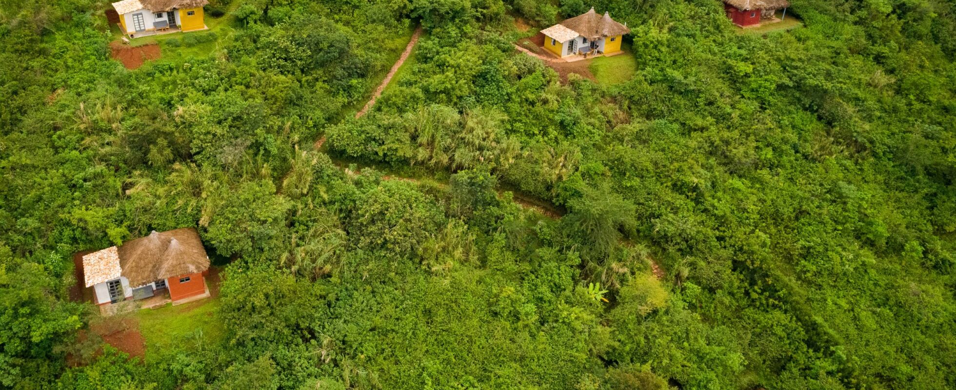 Isunga Lodge ligger ved kanten af det berømte Kibale National Park, er omgivet af ikke mindre end tre nationalparker (også med udsigt til Rwenzori Peaks og Queen Elizabeth National Park) og har 8 enkle hytter (heraf én til familier), fordelt på en skråning. Alle hytter har opladningsmuligheder, myggenet, skylletoiletter, brusere med varmt vand og en privat terrasse med betagende udsigt over Kibale Forest. Den forfriskende saltvands-pool, en bar og en restaurant med stort fokus på frisk mad (serveret som faste menuer, men med hensyn til særlige kostbehov) , samt den tætte nærhed til chimpanserne fuldender oplevelsen. WiFi er tilgængeligt i fællesområderne, men kan være en smule langsomt, da lodgen ligger så afsides. Men har man virkelig brug for WiFi i paradis?