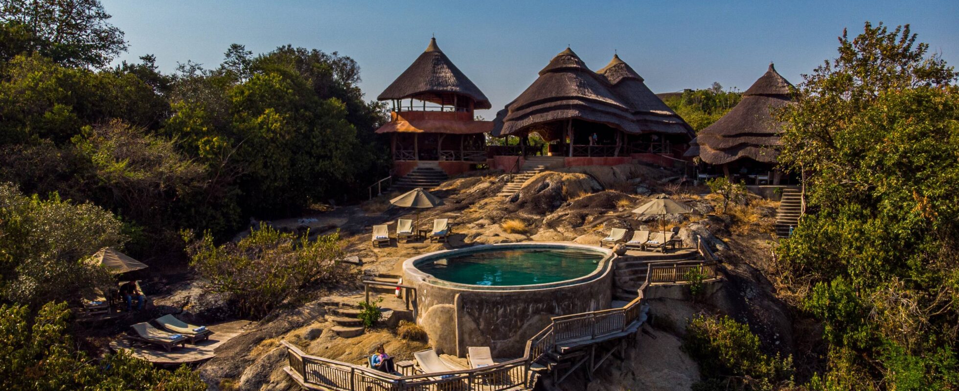Mihingo Lodge er en miljøvenlig og luksuriøs teltlejr lige ved Lake Mburo National Park. Beliggende på forhistoriske granitblokke byder den på spektakulær udsigt over det vidtstrakte savannelandskab. De 12 teltværelser er designet til at smelte naturligt ind i omgivelserne, alle placeret på hævede træterrasser under stråtage og udstyret med eget badeværelse med varmt brusebad og skylletoilet. Tidlig morgen serveres te eller kaffe direkte til teltet, så du kan nyde naturen fra din rummelige veranda inden morgenmaden. Infinity-poolen, flere afslapningsområder og et udkigstårn med store sofaer giver dig den bedste plads til at beundre solnedgange og tage udsigten ind. Restauranten med udsigt til et vandhul og en saltplads, er perfekt til at nyde lækker mad, mens du måske får øje på bøfler, elandantiloper, impalaer, vortesvin, bushbucks og zebraer.