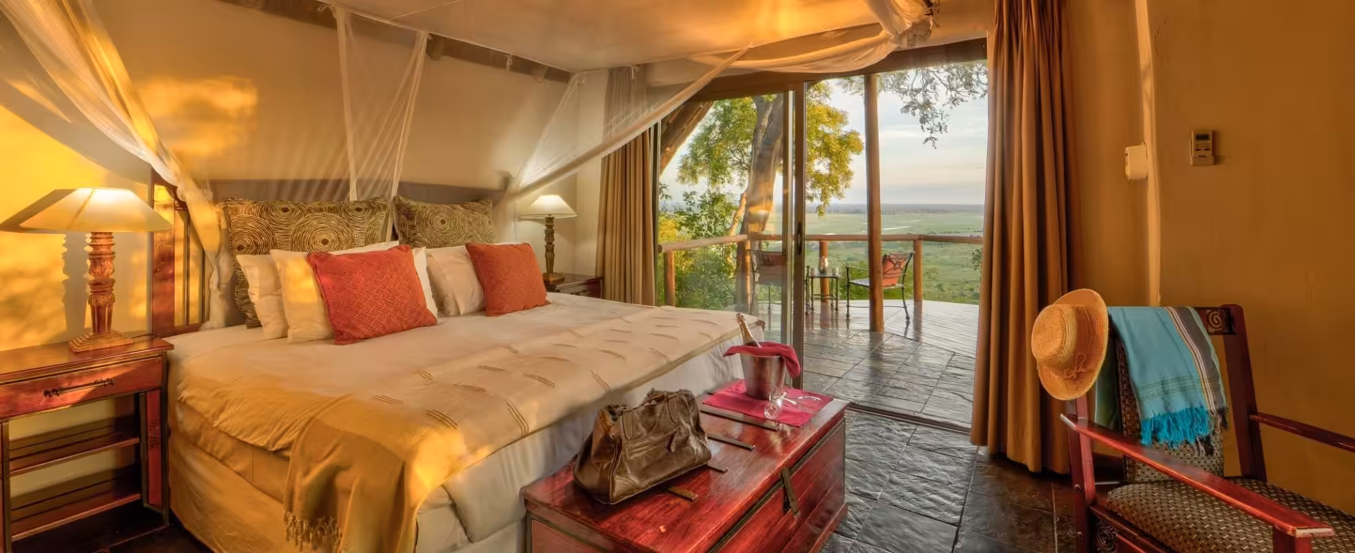 Højt på en skrænt på den roligere vestlige side af Chobe National Park ligger Muchenje Safari Lodge i Chobe Forest Reserve uden hegn mellem lodgen og parkens grænse – så dyrene kan bevæge sig frit forbi! De 10 private hytter med stråtag og en familiehytte har hver et privat terrasse, eget badeværelse, aircondition, loftsventilator og udsigt over den sæsonbestemte flodslette. Familiehytten har desuden en mezzanin med soveplads til to børn og to badeværelser. Du kan nyde måltiderne i fællesskab i hovedlodgens spiseområde med udsigt over floden og et vandhul, men der tilbydes også privat spisning, en lapa ved poolen og en bush braai i en nærliggende boma (kokkene tilbereder også vegetariske, veganske og glutenfri retter!).