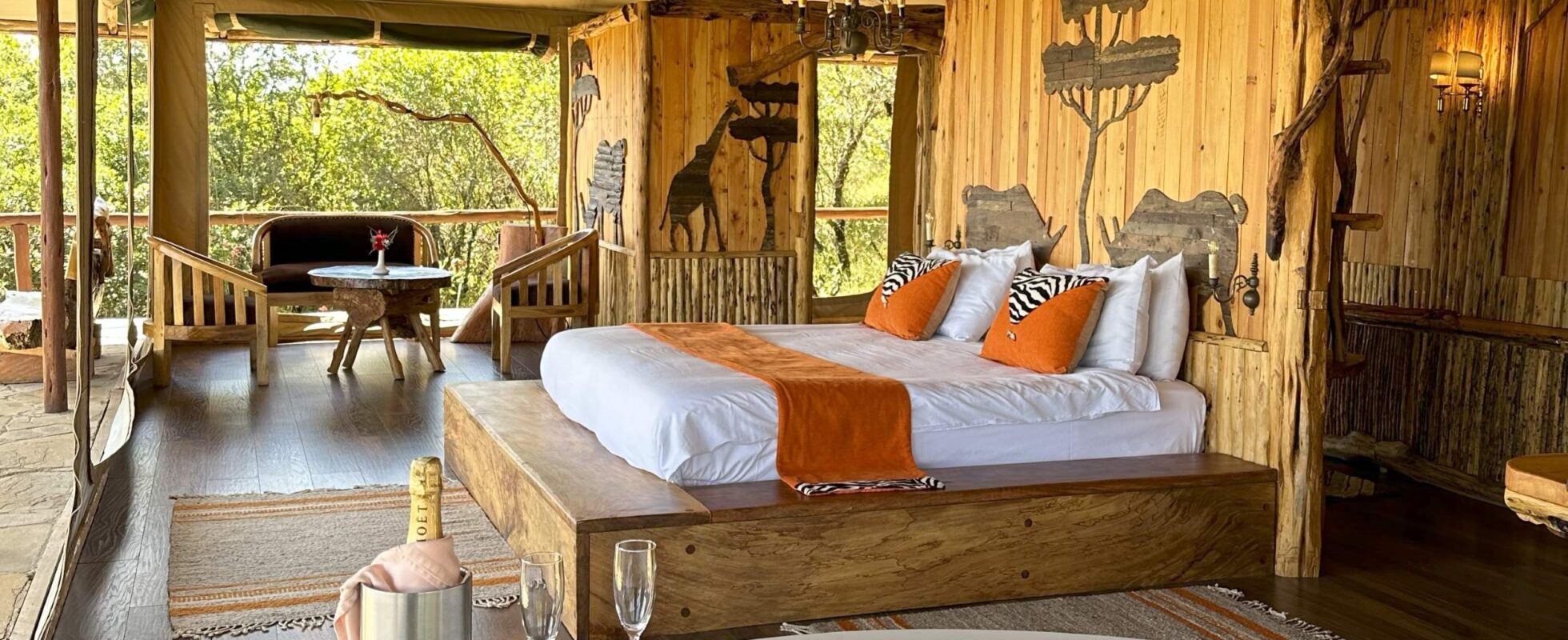 I det centrale kenyanske højland ligger Rhino Watch Safari Lodge, omgivet af Aberdare National Park samt Solio og Ol’ Pejeta Conservancy, alle fyldt med næsehorn. Selvom alle hytterne og telte er imponerende, er Senator-teltet lodgens kronjuvel. Det er et hævet og rummeligt canvas-telt med trægulve, en stor seng i midten, en siddeplads i den ene side og et fritstående rundt badekar i den anden. Canvas-væggene har store vinduer, som kan rulles op, så du får det fulde udbytte af den fantastiske udsigt. Det betyder, at efter en dag med næsehornsafari kan du slappe af i badekarret med et glas bobler i hånden, mens du mærker den kølige brise fra den mørke afrikanske nattehimmel. Morgenerne er perfekte til en bog i hængekøjen, som står på den store altan, der går langs teltets længde. Hvis du stadig vil ud, kan du besøge biblioteket med en lille solnedgangsbar, spaområdet, poolen, baren og restauranten i hovedlodgen.