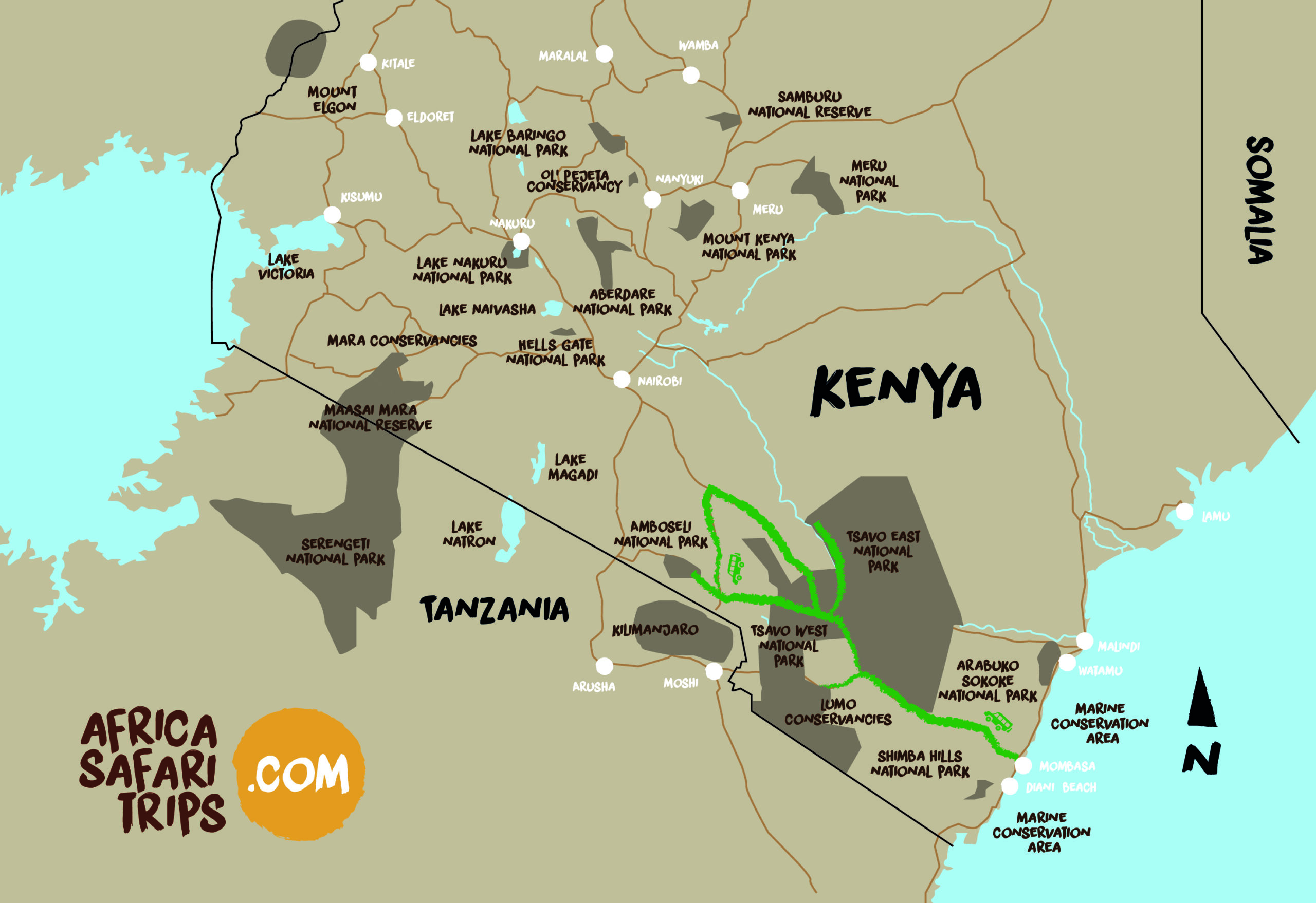 Du starter din rejse i Mombasa og besøger herfra fire af de nationalparker, der ligger tættest på denne unikke kystby. Rejsen slutter med et par dejlige dage på stranden i Diani Beach.