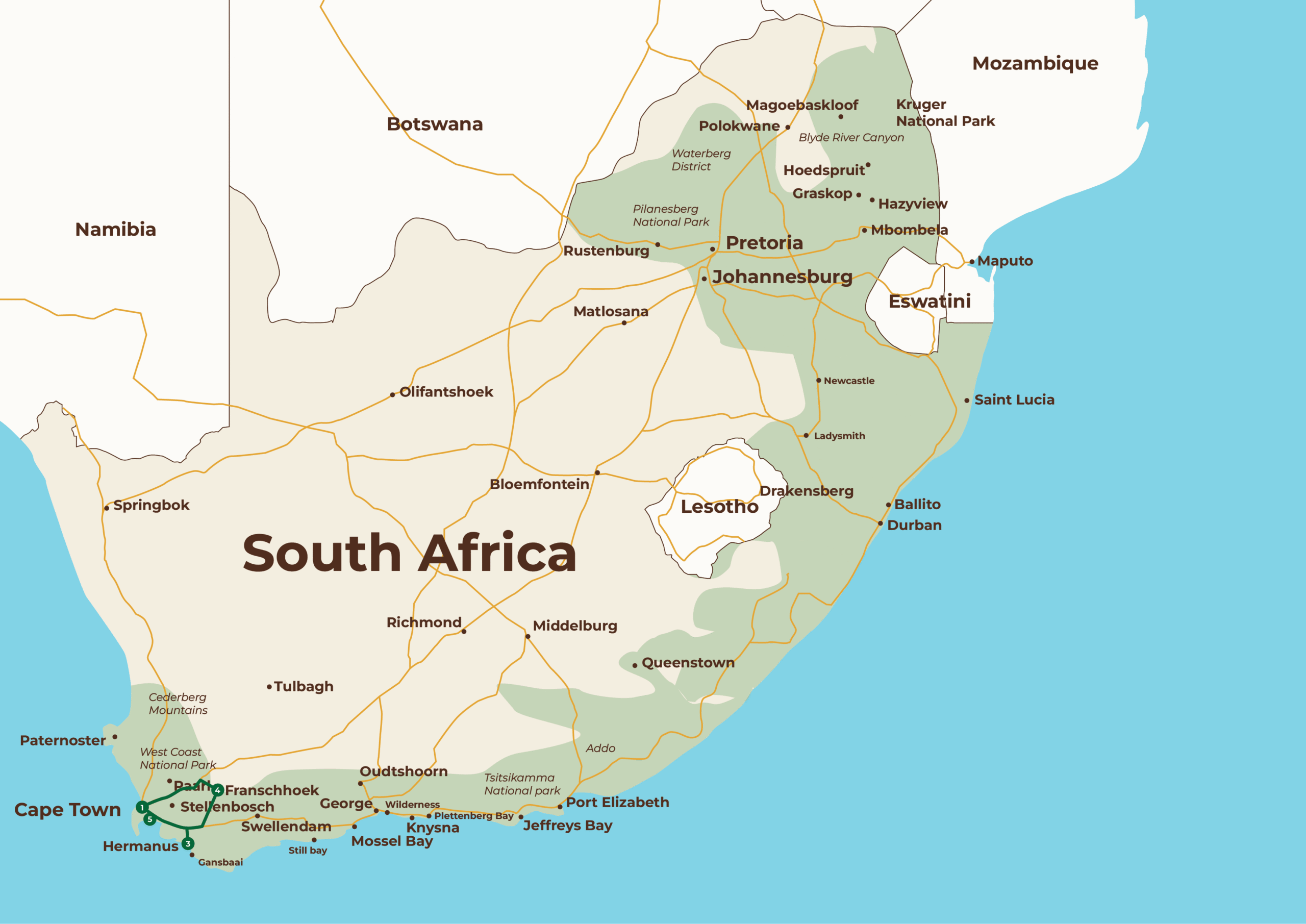 6 dage fyldt med smagsoplevelser og uforglemmelige køreture gennem det bedste af Sydafrika!